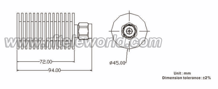 Coaxial fixed dummy load absorb RF/Microwave energy and are commonly used as dummy loads of antenna and transmitter. They are used as match ports in many multiport microwave device such as circulator and directional coupler to make these ports which are not involved in the measurement be terminated in the characteristic impedance in order to ensure an accurate measurement.50W RF load termination Technical Specifications: NORMINAL IMPENDANCE 50Ω FREQUENCY RANGE DC to 3.0GHz VSWR 1.20 Maximum POWER RATING 50 watts average TEMPERATURE RANGE -55°C to +125°C